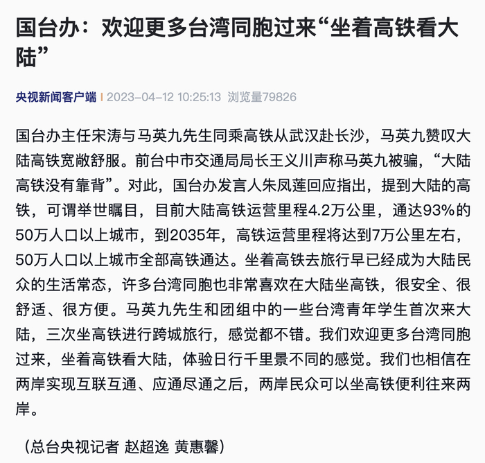 #国台办回应台前官员称大陆高铁没靠背#[台前官员称“大陆高铁没有靠背”,国台办回应]国台办主任宋涛与马英九先生同乘高铁从武汉赴长沙,马英九赞叹大陆高铁宽敞舒服。前台中市交通局局长王义川声称马英九被骗,“大陆高铁没有靠背”。对此,国台办发言人朱凤莲回应↓↓