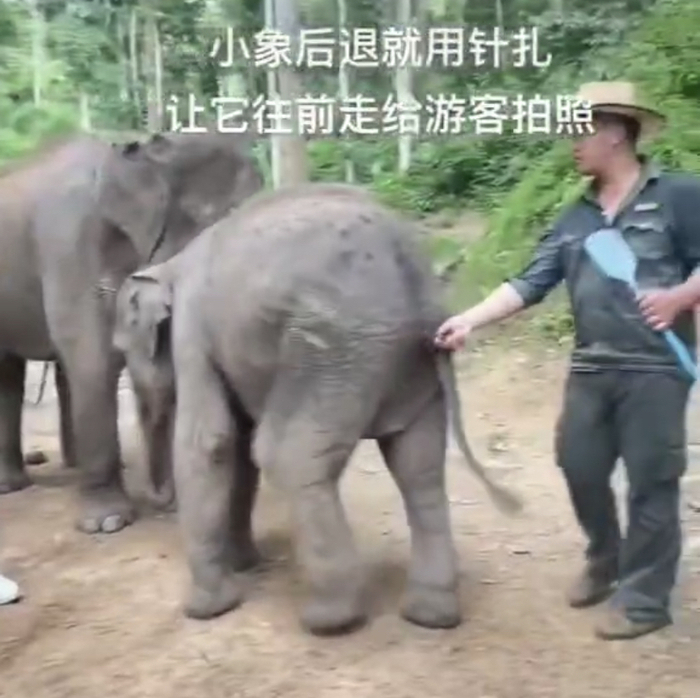 庭审中,原告方环境研究所出具了野象谷景区在2017年向国家知识产权局提交的一项专利申请《一种大象培训和驯养的方法》、野象谷景区曾发布的大象踢足球以及网友发布的疑似野象谷景区工作人员用针扎小象等影像资料,作为指控野象谷景区存在“虐象”行为的证据。