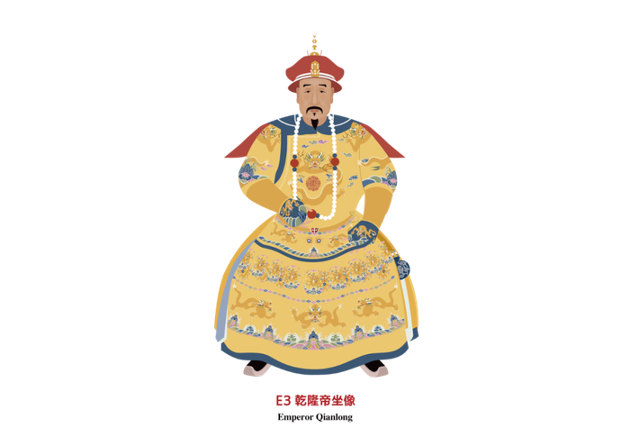 以人物图谱举例,清代有6位皇帝与圆明园有关——康熙、雍正、乾隆、嘉庆、道光和咸丰,每个人都有故事在这里发生。北交大建筑与艺术学院副教授刘捷,带领历史文化研究团队,通过7次调研、阅读《三园图志》等6本相关书籍文献、参考《三山五园的历史变迁》等论文文献,再查阅样式雷文档和烫样,以及一百余张历史照片和画卷,最终选出最有故事的3位皇帝——雍正、乾隆和咸丰的形象,移交给设计团队,接力进行图谱的绘制。