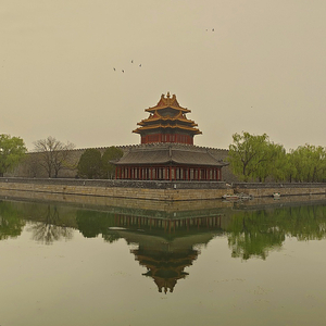 2023年4月13日,北京,沙尘天气中,故宫角楼。视觉中国 图