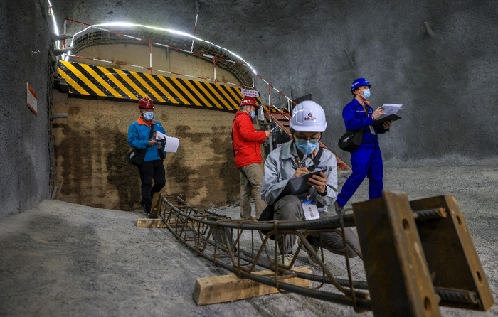 在地铁3号线星火站施工现场旁,技能竞赛正如火如荼地开展。考题设在了一座按1:1比例搭建的隧道内, 实景模拟了轨道交通工程明挖和暗挖施工作业环境。来自全市轨道交通工程建设的18家监理单位和39家施工单位, 共57名安全质量一线管理人员参加了竞赛。隧道内,参赛选手凭借专业知识和多年积累的施工经验,认真检查眼前的钢筋混凝土大模型,在规定时间内尽可能多地将预设的安全质量隐患一一查找标识出来 。