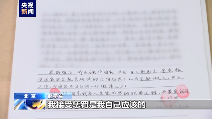 赵学军:无事献殷勤,非奸即盗。他请我吃饭,本来就没安什么好心,我还乐呵跟人家吃去。其实我自己的一个根本问题就是,我对自己没有原则,贪图小利,把自己保密身份给忘了,人家是有备而来,人家是有目的的,我接受惩罚是我自己应该的。