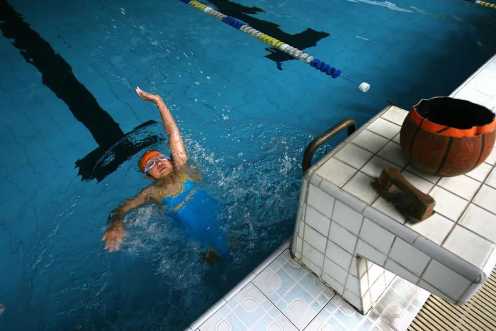 2007年9月11日,钱红艳正在进行专业的残疾人游泳训练。