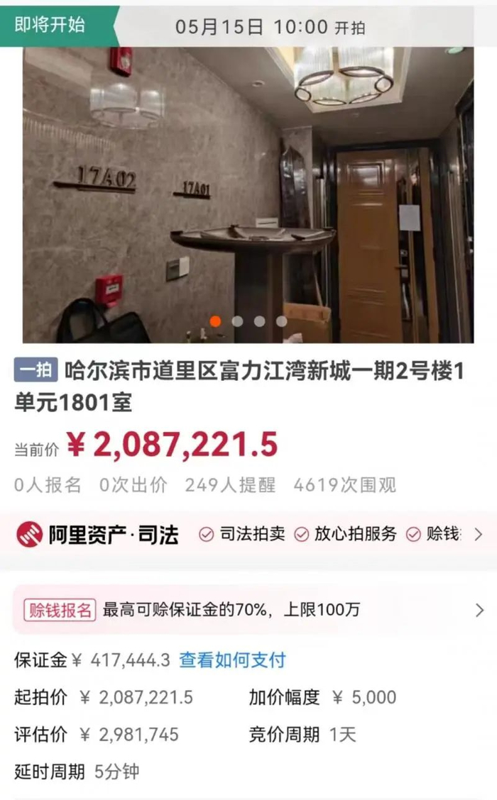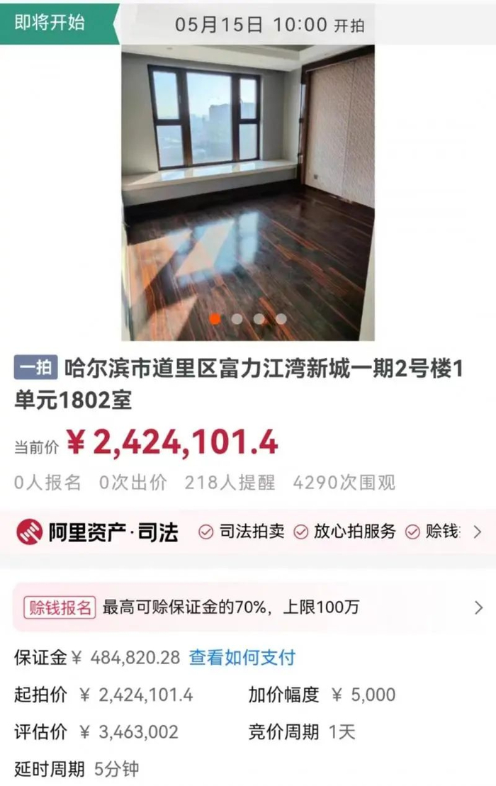 1802室房屋面积172.77平方米,评估价346.3万元,起拍价242.4万元,保证金48.48万元,加价幅度5000元。