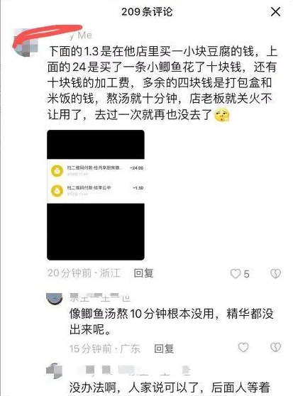 在这个视频的评论区,不少网友吐槽收费有些贵,“上个月在里面做了一次,炖两个鸡蛋,炒了一份娃娃菜,手工费10元,菜钱另外掏,也没有送米饭!”还有网友介绍:“我做了一份排骨汤,一根排骨,两个胡萝卜,下来四十多。”看到这些介绍,很多网友才恍然大悟,“终于理解价目表了”“原来做一道菜就要收一次费”……