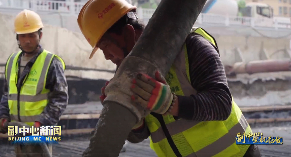 记者在北京轨道交通22号线政务中心东站施工现场看到,工人们正在紧张有序施工,伴随着最后一方混凝土浇筑完成,项目顺利封顶。