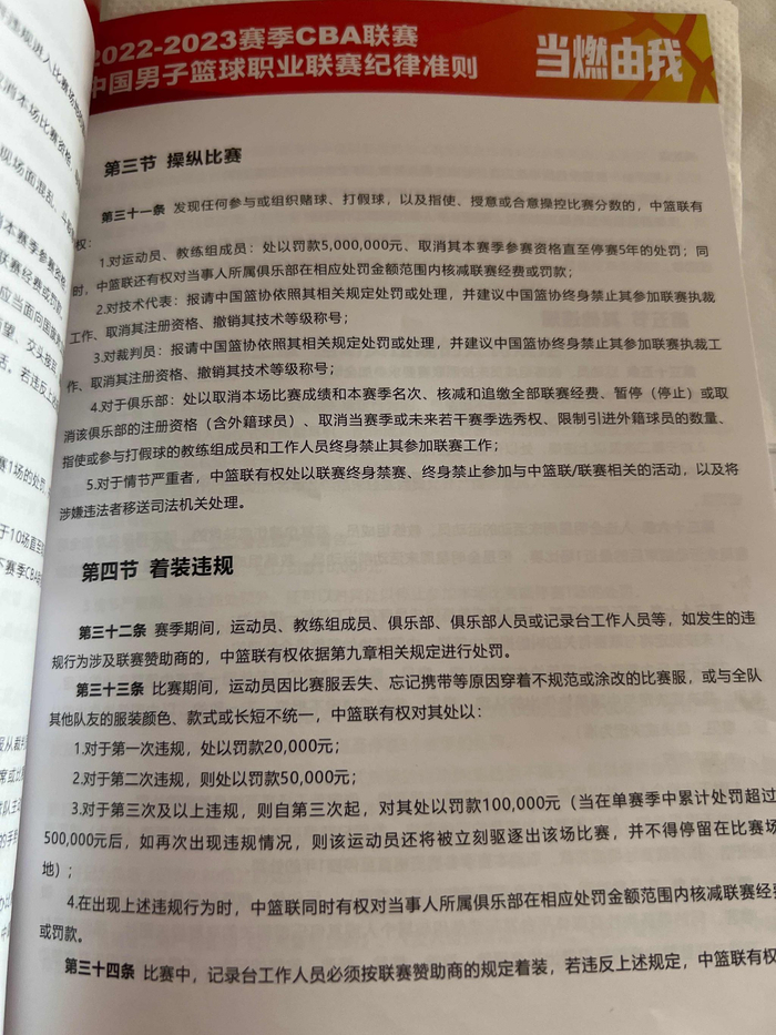 而对“操纵比赛”,联赛手册则写明CBA公司有权将涉嫌违法者移交司法机关。