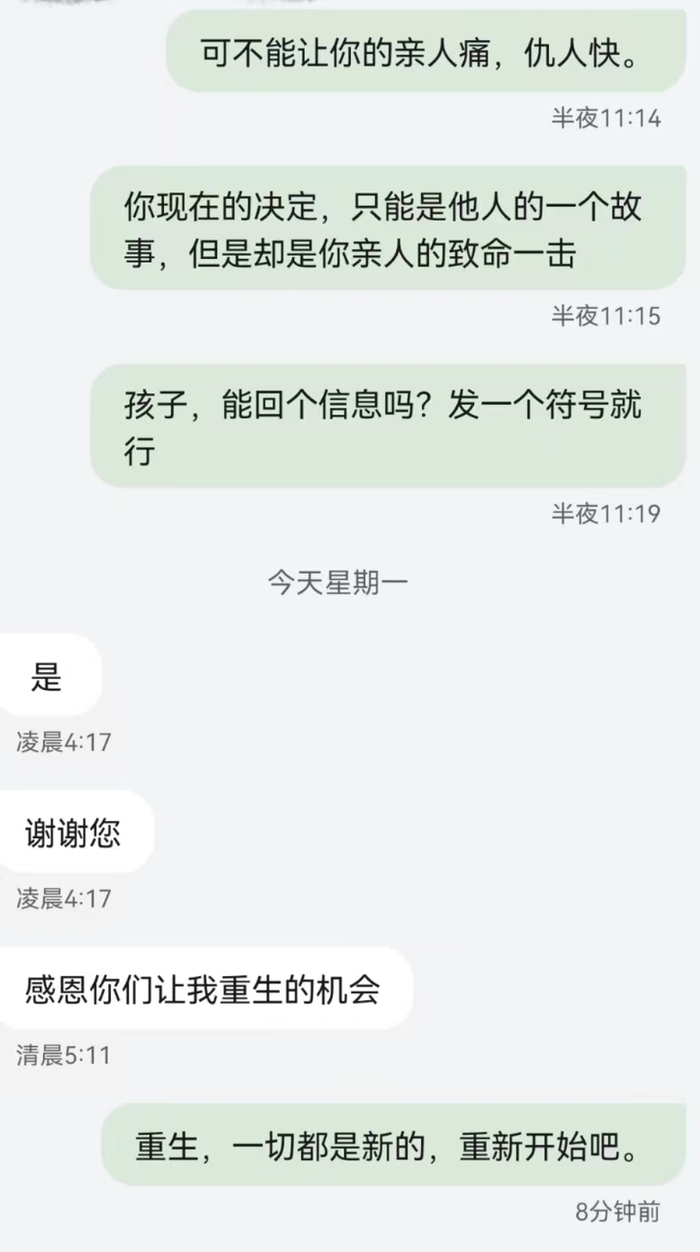 尽管这几年里,丧子的伤痛、身体的不适以及整天面对屏幕另一端发来的消极的文字,让徐世海也曾数度陷入痛苦。但这些都没有阻拦住徐世海,在他眼里,人只有十分无助、无路可走的时候才会选择结束生命。这些想要自杀的人,心里一定是非常痛苦挣扎的。“如果通过我的努力,就能改变一个孩子的命运,那就值得。”徐世海说。