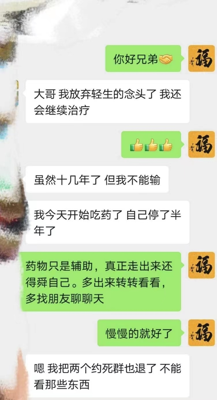 徐世海:很大一部分是我在社交媒体平台上看到的,不过最近两年因为报道我的媒体越来越多,也有人主动找我,和我说他的朋友、亲人或是他自己出现了一些问题。其实这些主动来找我的,做工作反而会容易一些。当然,并不是所有的自杀或者约死都能被发现,也并不是所有的求死者都能被成功劝说。
