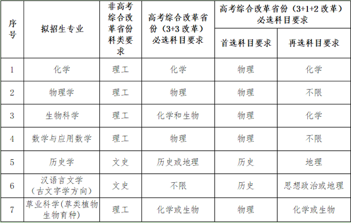 兰州大学2023年强基计划具体招生专业及相关要求。考生科类(高考综合改革省份的选考科目)须与该校相关专业要求相匹配。图/兰州大学