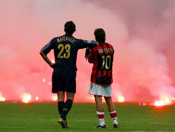 在AC米兰和国际米兰先后闯进半决赛后,马特拉齐手搭在鲁伊•科斯塔肩膀上看烟花的照片再次被双方球迷刷屏,这是双方上一次在欧冠中碰面时留下的经典画面。