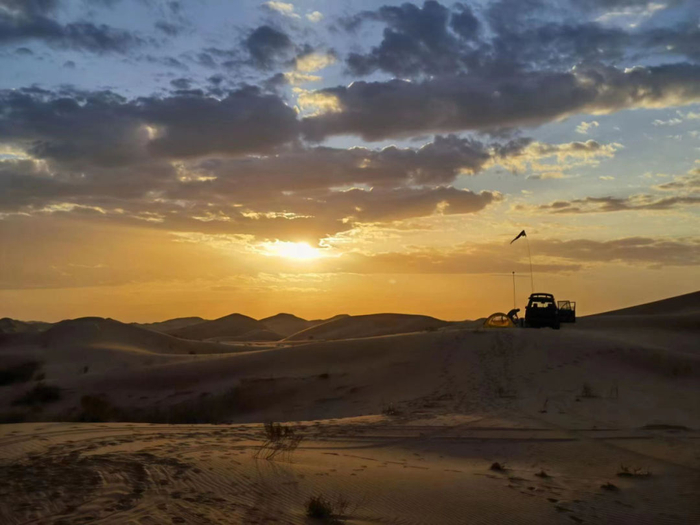 王方辰对沙漠一点都不陌生。2003年,为了研究博斯腾湖周边的植被情况,他第一次徒步腾格里沙漠,他们穿着军大衣、解放鞋,条件至为艰苦。2019年,他还参加了中探协组织的5天4晚塔克拉玛干沙漠探险。比起“严酷”的塔克拉玛干沙漠,王方辰感觉,腾格里沙漠“是温柔的”——海拔低,坡度小,还有水坑、植被,是一种非常简单的沙漠类型,适合入门级徒步和探查。“根本算不上什么‘ 探险 ’,因为没有危险,没有强度,适合慢慢溜达。”尤其当他到银川见到两位领队,听到其中一人还有珠峰探险的经历后,王方辰觉得这样简单的活动用这么高的配置是“杀鸡用牛刀”了。