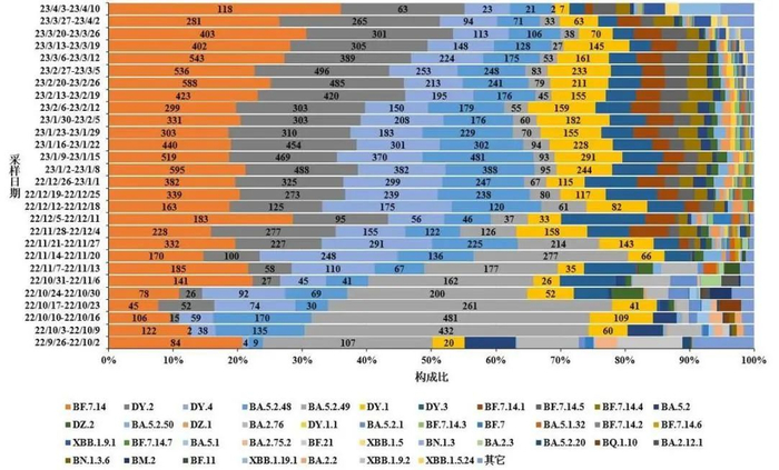 全国新型冠状病毒变异株变化趋势图。中国疾病预防控制中心官网图