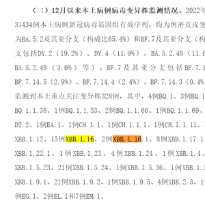 国外研究显示,XBB.1.16的传播效率略高于此前流行的XBB.1和XBB.1.5变异株,XBB.1.16的免疫逃逸能力与XBB.1.5相当。目前,暂无感染XBB.1.16而导致重症入院或死亡增多的报道,也未见与其他奥密克戎亚分支相比疾病严重程度更高的报告,但在儿童、老年人和有基础性疾病等脆弱人群中,不排除因个体差异引起较重的临床表现。