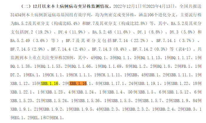 4月15日,中国疾控中心公布了全国新冠病毒感染疫情最新情况。对比4月8日公布的数据,4月7日~4月13日,新监测到本土重点关注变异株124例(共计21个分支)。其中,中国疾控中心首次监测到15例XBB.1.16和2例XBB.1.16.1,表明这一变种病毒已经进入我国。