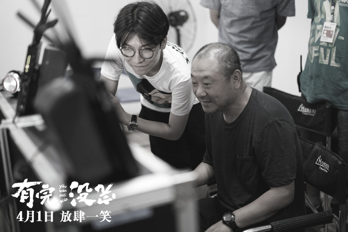 王啸坤首次做导演拍摄电影《有完没完》,与主演范伟(右)在一起。
