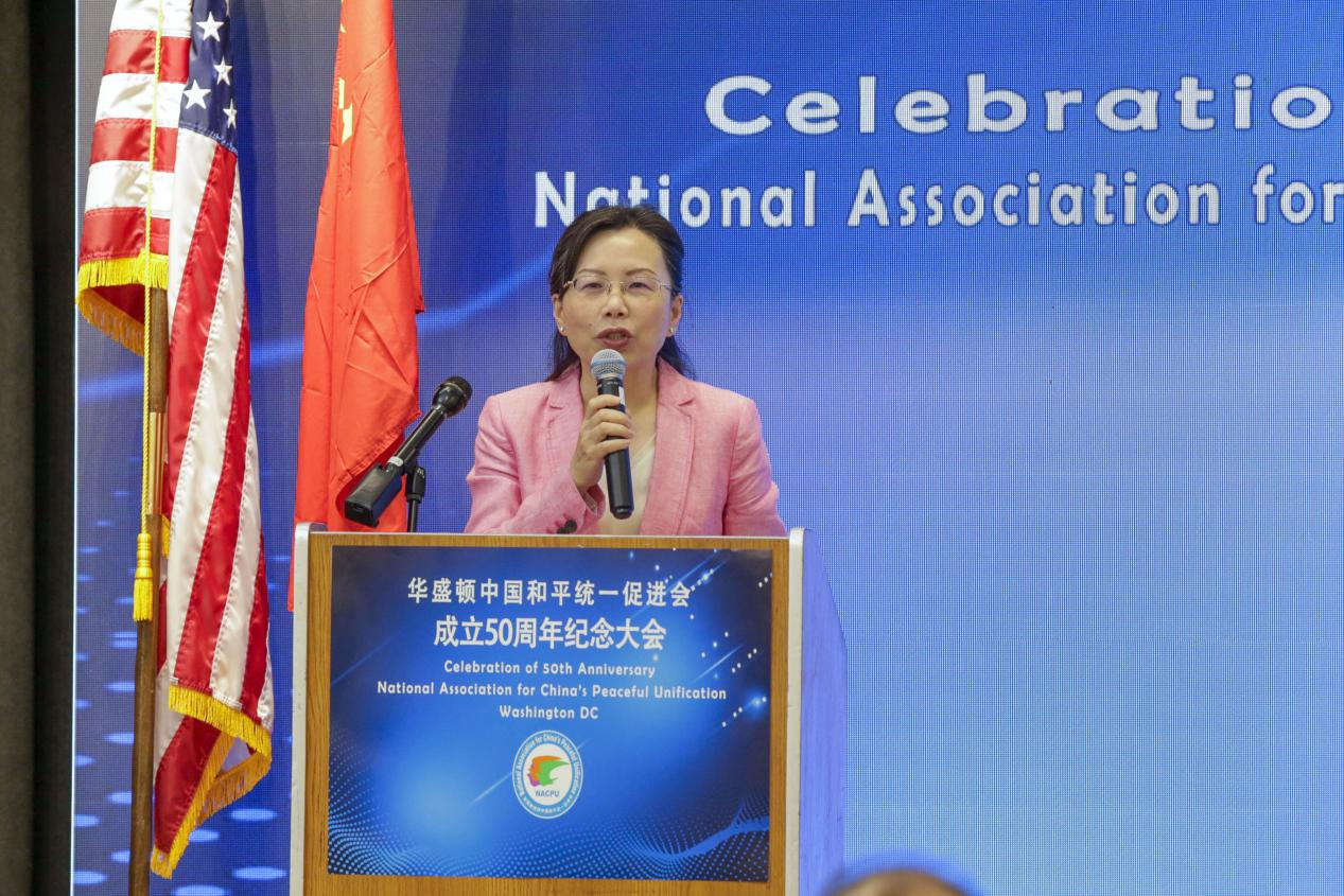 一水之隔,咫尺天涯,两岸迄今尚未完全统一是历史遗留给中华民族的创伤。谋求国家统一,实现民族复兴,是所有海内外中华儿女的历史责任,更是无尚光荣的历史使命。祖国统一的车轮滚滚向前,任何人任何势力都无法阻挡。我们坚信,有包括在美华侨华人在内的全体中华儿女团结奋斗,祖国统一大业一定能够尽早实现!希望华盛顿和统会矢志不渝,砥砺前行,继续团结广大旅美侨胞,坚决反对“台独”分裂势力,坚定支持中国和平统一,积极促进中美友好,为维护中美关系健康稳定发展、造福亚太地区和世界人民福祉携手共进!