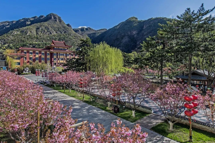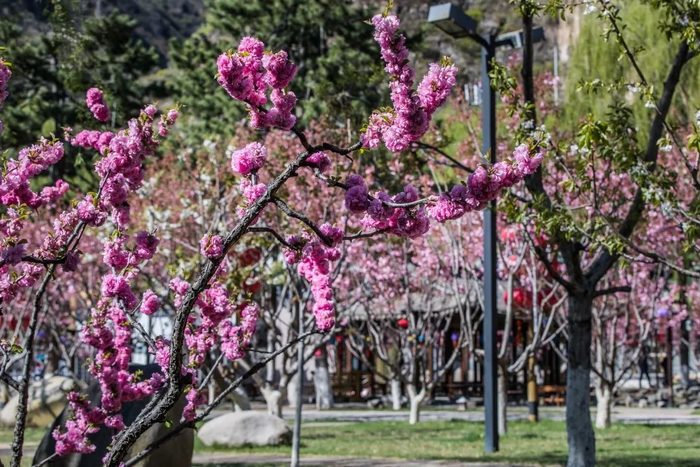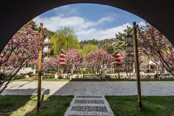 春暖花开,樱树成荫,龙庆峡风景区已经被缤纷盛放的樱花装扮成了京郊最美丽的地方。待五一假日,璀璨的阳光下,粉色的樱花瓣漫天飞舞,透过这朵朵花瓣,那金色阳光下绚丽的绯红,温和地、柔软地勾勒出这浪漫的味道!景区院内的樱树在道路两旁亭亭玉立,或连成一片熠熠生辉,或独成一景静静开放,是那么的浪漫、纯粹。在这浪漫的樱花季节里,让我们相会在龙庆峡,来一场唯美的樱花之旅吧!