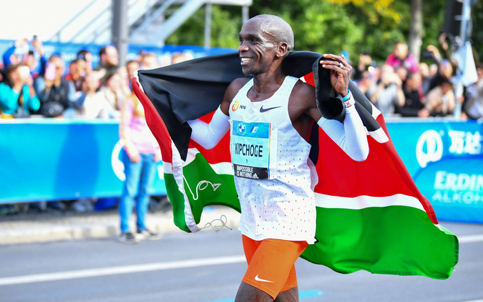 基普乔格在2022年柏林马拉松赛上以2小时01分09秒夺冠,打破了他本人在2018年柏林马拉松赛上创造的2小时01分39秒的世界纪录。 图/新华社