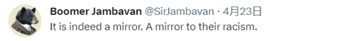 还有网友说,“它确实是一面镜子。反映出他们的种族主义。” ↓