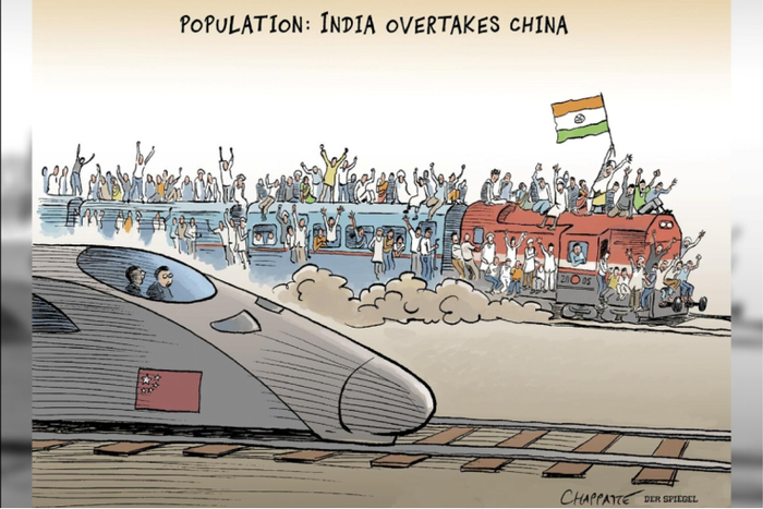 德国杂志漫画绘“印度人口超中国成世界第一”,印网友看完不高兴