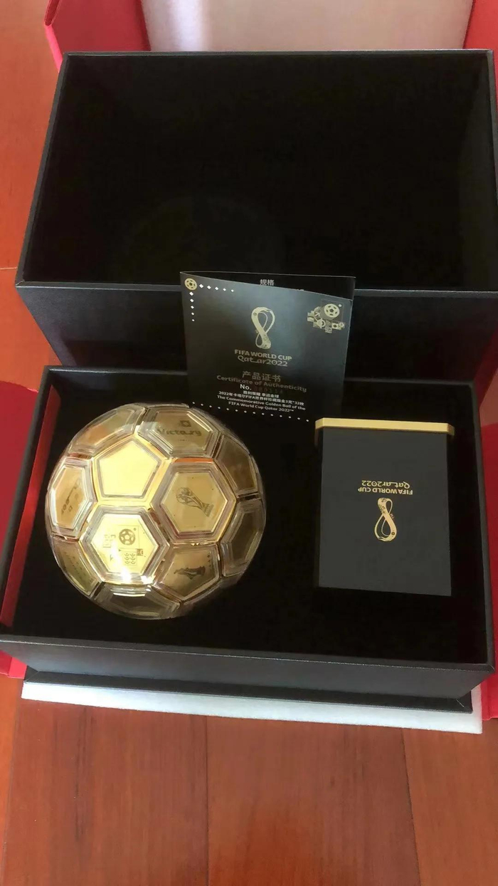什么球值这么多钱?据称,薛先生购买的这款金球,名为“2022年卡塔尔FIFA世界杯至尊金球”,底座有梅西亲笔签名。对于球迷而言,这无疑是一份珍贵的纪念,与价值有关,更超越价值。毕竟,丢件索赔只是事后无奈之举。