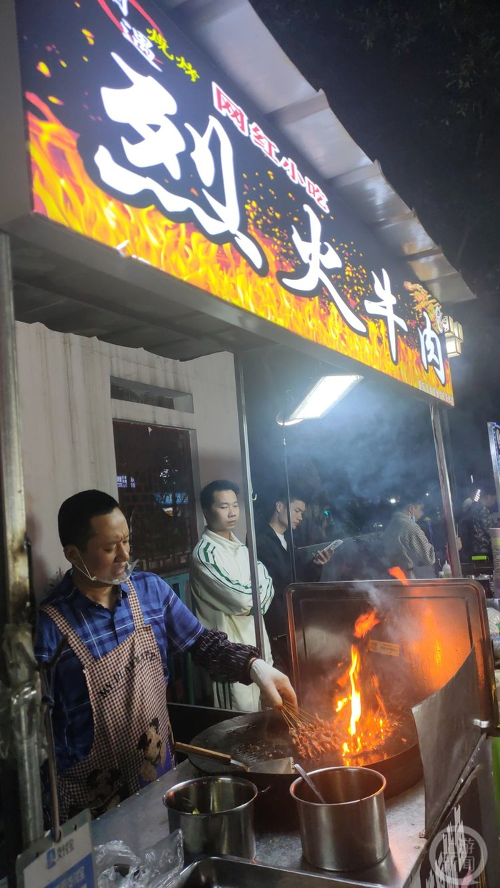 “我们明天也要搬到新址去了,欢迎来光顾哦!”网红小吃“烈火牛肉”摊位前,工作人员边忙着烤牛肉串,也边为食客们宣传自己新摊位的位置。