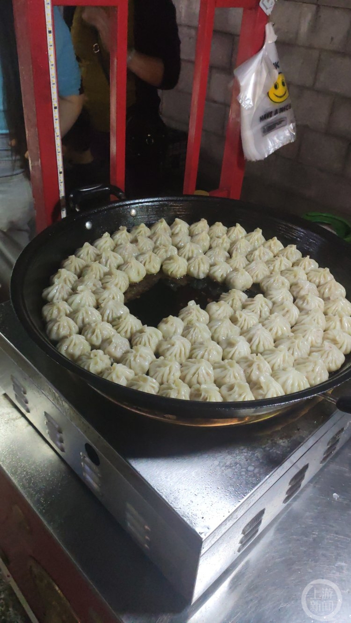 “老板来一份炒饭”“老板帮我拿十个指母生煎包”“老板来个肉夹馍”……有食客边逛,边选自己喜欢的美食,看着亲手制作好后,拿到手里,咬上一口,直呼“安逸”。
