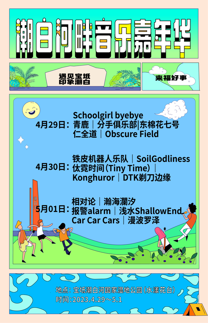 迎着大好春光,体验河畔踏青与17组潜力非凡、风格多样的乐队一起(见海报),尽情享受大自然的迷人与浪漫,露营、野餐、赏花、垂钓、发呆……总有一款适合渴望放松的“五一”假期。