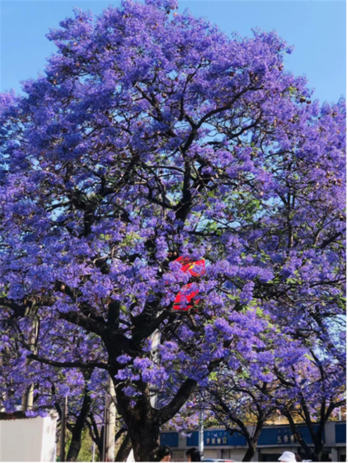 蓝花楹是西昌市的市树,5万余株蓝花楹分布在城区的大街小巷。眼下正是蓝花楹盛开的季节,在城区航天北路、健康路、建昌路等地,一株株蓝花楹竞相绽放,朵朵紫花在蓝天的映衬下纯净而优雅,整座城市成了紫色花海,吸引了众多游客打卡。