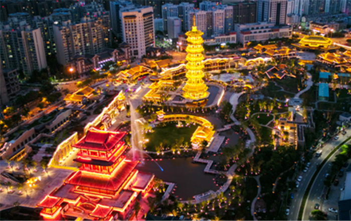 唐园因保存着1300多年前唐代嶲州城的一段古城墙遗址得名。整体呈扇形分布,融文化、旅游、商业为一体。