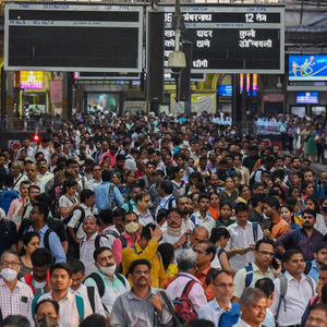 当地时间2023年4月19日,印度孟买,人们挤在站台上等火车。图/视觉中国
