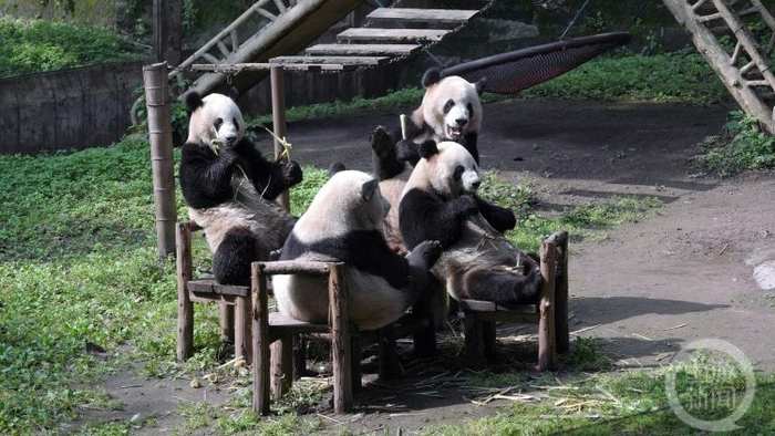 憨态可掬的大熊猫是近期国内热点,重庆动物园的“熊猫天团”也被网友称为全网最铁的“四喜丸子”。他们坐在方桌前吃早饭的样子憨萌可爱,“五一”期间,也将在重庆动物园迎接游客们的到来。