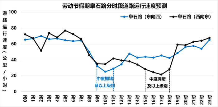 ❖阜石路劳动节假期分时段道路运行速度预测