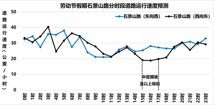 ❖石景山路劳动节假期分时段道路运行速度预测