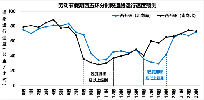 ❖西五环劳动节假期分时段道路运行速度预测