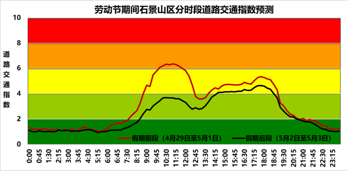 ❖劳动节假期期间石景山区分时段道路交通指数预测