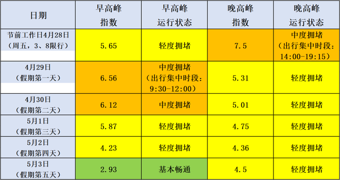 ❖劳动节重点日期交通运行情况预测