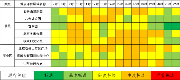 ❖石景山区劳动节假期重点区域拥堵情况预测
