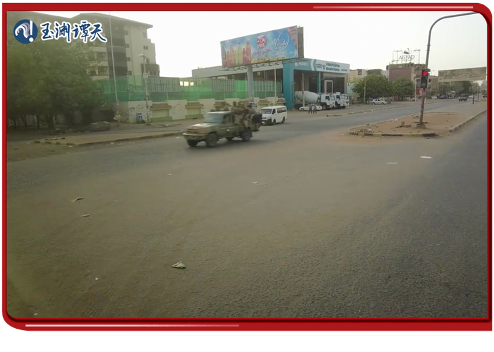 进入中心城区时,4辆军队武装车从他们面前驶过。离开喀土穆之后,路变得非常颠簸。沿途能看见不少侧翻的车辆。