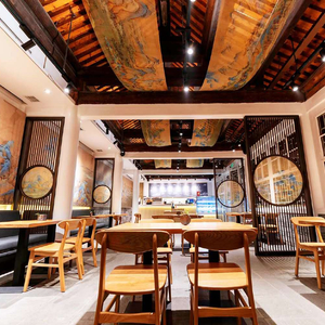 故宫神武门附近的角楼咖啡凭借蕴含宫廷元素的文创衍生品快速出圈。这里的布置充满国风味道,正红色的门脸儿,木质结构的建筑,古色古香的门廊,中式木质桌椅橱柜,以及灰砖铺成的地板,屏风、圆窗、壁纸都巧妙运用《千里江山图》。房梁上也悬挂着印有《千里江山图》的丝缦,古色古香中更添文化韵味,这里也成为故宫角楼咖啡的打卡位置。