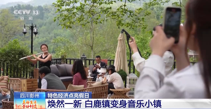 在四川省成都市彭州市的白鹿镇,近年来,当地以音乐为主题,打造了音乐咖啡吧、主题民宿等一系列消费新场景,吸引了很多游客。据了解,白鹿镇在“5·12”地震期间曾深受影响,从灾后重建到脱贫攻坚,再到乡村振兴。经过不断发展,小镇如今焕然一新,成为独具特色的音乐小镇。