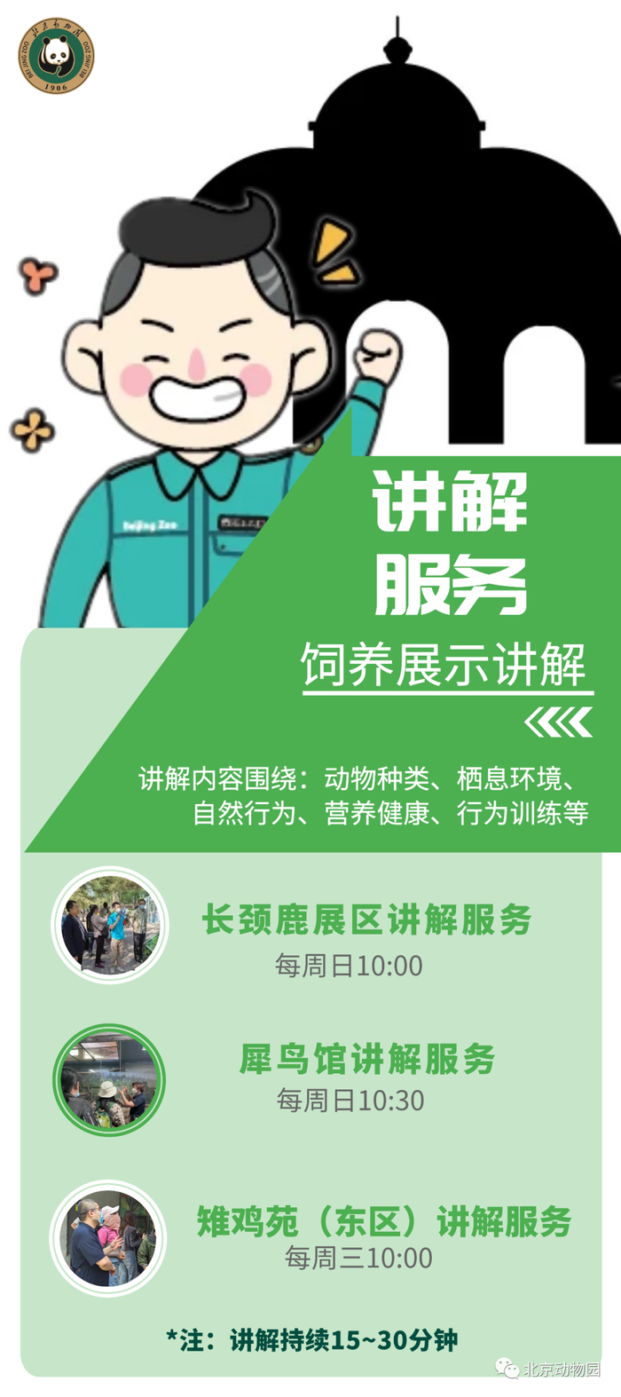 饲养员约你听科普~以饲养员视角带你了解更多饲养趣闻、动物科普,向游客传递先进的饲养理念,为游客提供优质的科普讲解服务~与饲养员面对面,等你来!