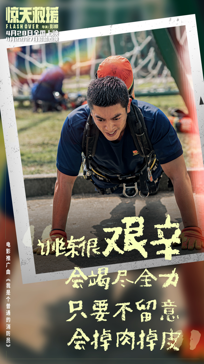 杜江平时就有健身的习惯,但在他看来,一个月的消防员训练还是非常有挑战性的,“强度非常大,它和在健身房跑步、撸铁还是不一样,消防员除了要有爆发力之外,耐力也是很重要的,耐力是为了保证在长时间作战救援时候的一种状态”。杜江很感谢这一个月的训练,训练过程中掌握的这些技能、吃过的苦、受过的伤,都是塑造角色、走进角色的一个过程,对最终呈现在银幕上的角色是有帮助的。