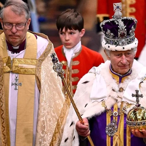5月6日,在伊丽莎白二世女王逝世8个月后,伴随着威斯敏斯特教堂响起“天佑国王”的音乐和呼声,英国国王查尔斯三世终于坐在古老的“命运之石”王座上加冕,戴上具有历史意义的王冠。