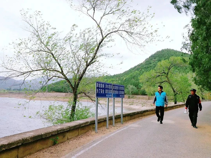 唐指山水库管理所工作人员巡查库区。