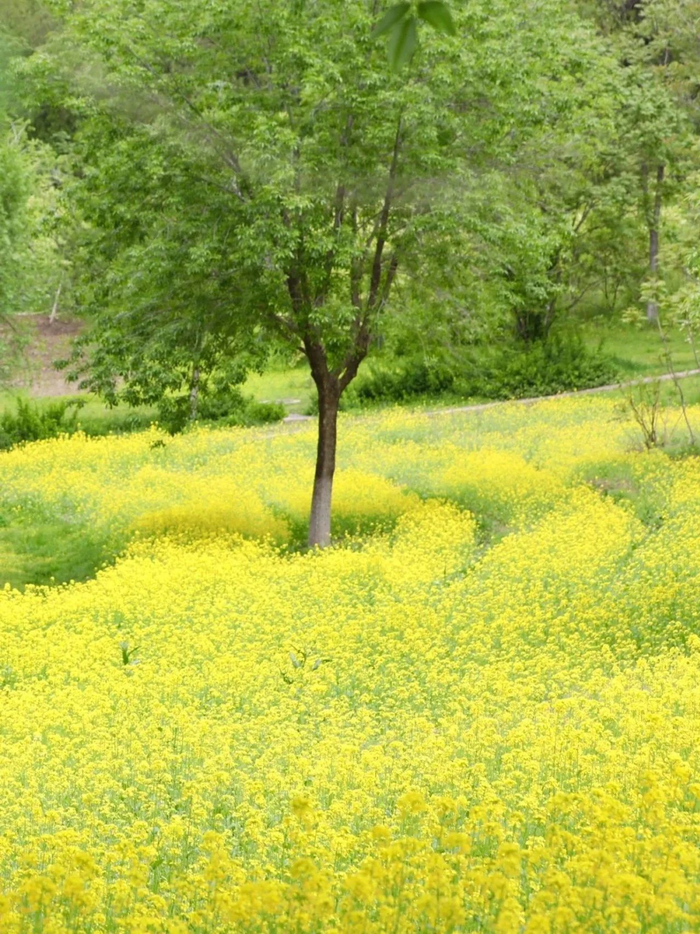 油菜花的热烈在这丰茂的绿叶中闪烁