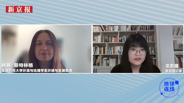 新京报记者连线英国约克大学环境与地理学系环境与发展教授林赛·斯特林格(Lindsay Stringer)。