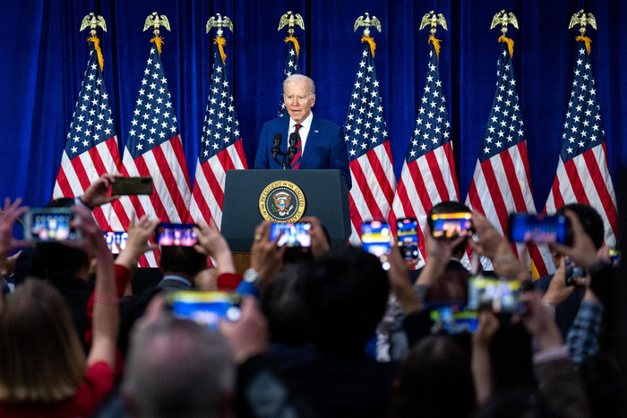 当地时间2023年3月14日,美国加州,美国总统拜登签署扩大枪支购买背景调查的行政令,以减少美国的大规模枪击暴力事件。图/视觉中国