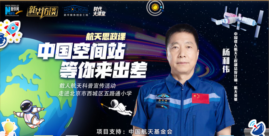 2003年,中国航天员杨利伟从酒泉卫星发射中心出发,迈出了中国人遨游星汉的第一步。这次首次飞天都有哪些难忘的经历?现在的航天员“出差”到底是什么样的感受?在天舟六号发射前夕,新华网特邀请中国载人航天工程副总设计师、航天英雄杨利伟走进北京市西城区五路通小学,为广大中小学生上一堂“中国空间站等你来出差”航天主题思政课,揭秘航天员的“出差”体验。